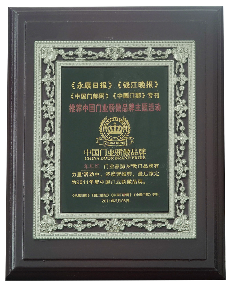 2001年:年年紅非標(biāo)門榮獲消費者最滿意產(chǎn)品 |